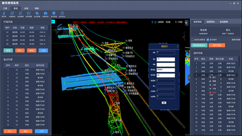 以激光/可见光点云数据为基础,遵循国网《多旋翼无人机巡检影像拍摄指导规范》标准通过标记杆塔点和组件点规划航线。